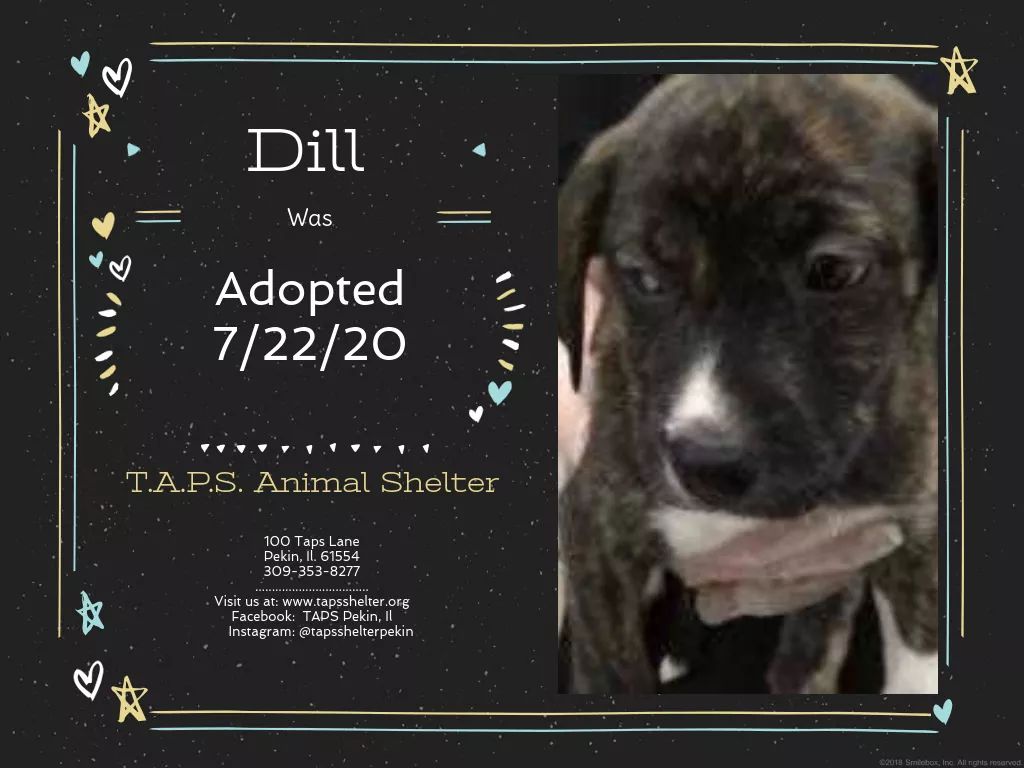 Adoptions for July 22, 2020 Posted bylindzamayJuly 22, 2020Posted inUncategorized Congratulations to Hadley, Kate, Dill and Chive for finding their forever homes today! Share this:TweetLike Loading... Related