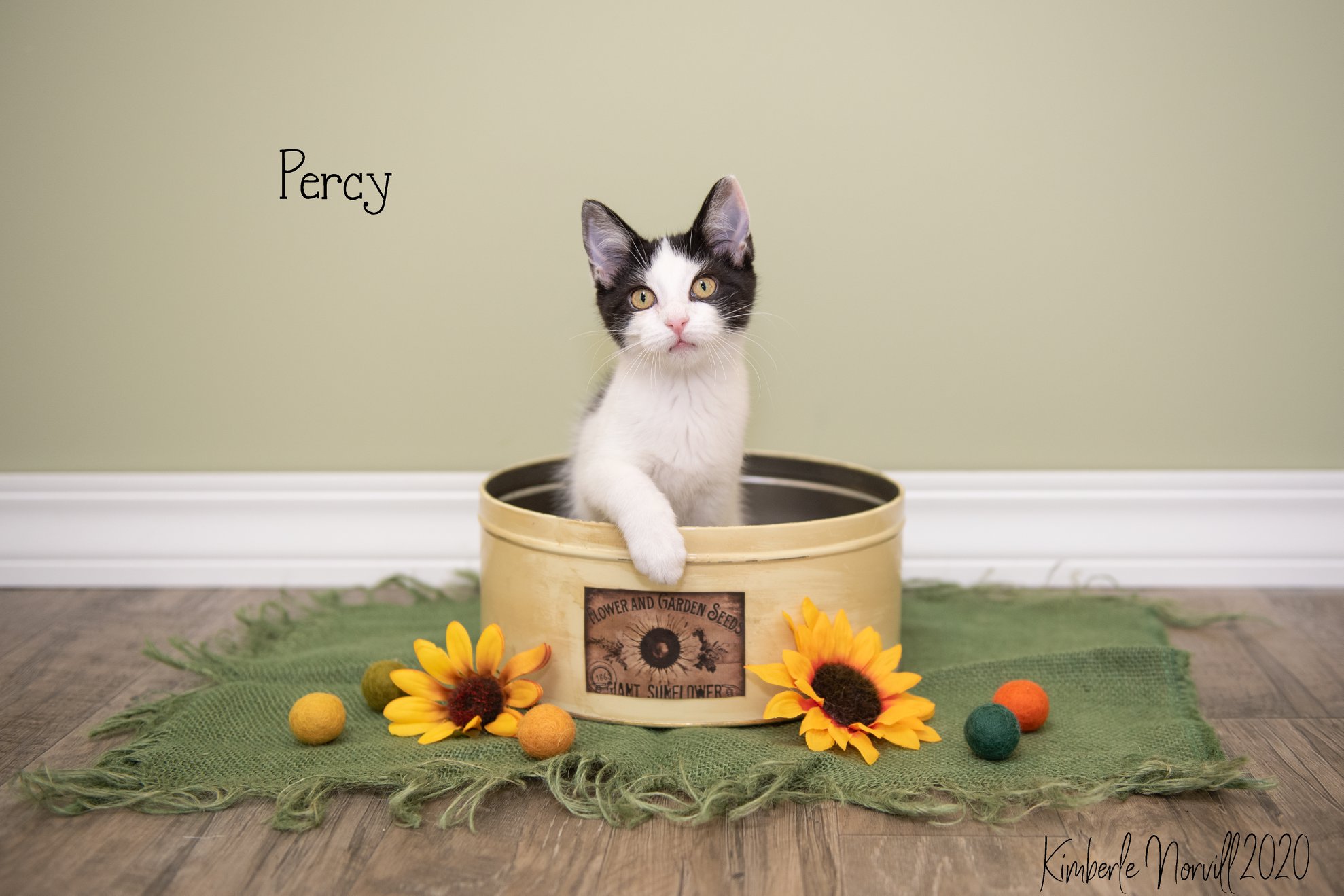 Paige, Percy, and Clarence are very social and love everyone they meet. If you’ll play with them…all the better!! They like dangling and rolling things, pouncing and rolling around with each other, and lots of snuggles!! Note: these kittens have tested positive for FIV, but it is not a true positive for kittens until after 6 months old, as infected mother cats transfer FIV antibodies to nursing kittens. Kittens born to infected mothers may receive positive test results for several months after birth. However, few of these kittens actually are or will become infected. To clarify their infection status, kittens younger than 6 months of age that test positive for FIV should be retested at 60-day intervals until they are at least 6 months old as it is most likely a false positive. FIV has come with a stigma for many years, that over the past several years, has been found to be incorrect, please talk with your vet and do your research. Do not let this scare you away from adopting one of these very sweet little cuties, that most likely will test negative over the next few months.