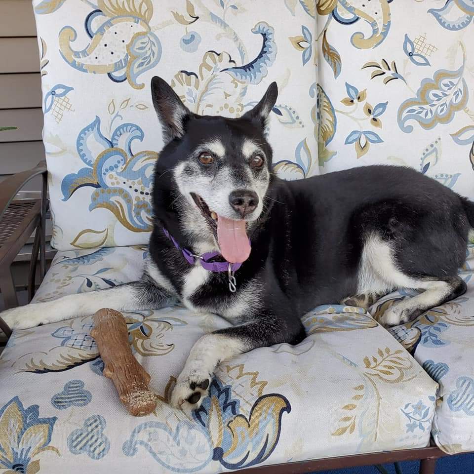 However, once we got home, he was curious and slightly more relaxed and the more he investigated my yard, the calmer and happier he became. Soon, he was running around the yard and wagging his tail with joy. He was very respectful of my garden and appears to be conscientious of “human spaces” as he used only my garden paths and we had to coax him to get on the patio furniture. After he thoroughly investigated my yard, he started to “move in” by burying treats and bones in my mulch and desperately wanting to go inside. Once inside my house, it was clear that he lived in a house before and he prefers to be inside rather than out. Inside my home, he became more independent, livelier, and was not interested in getting on the furniture or following us around, and quickly became very relaxed. Interestingly, he was disinterested in my dogs that were in another room.