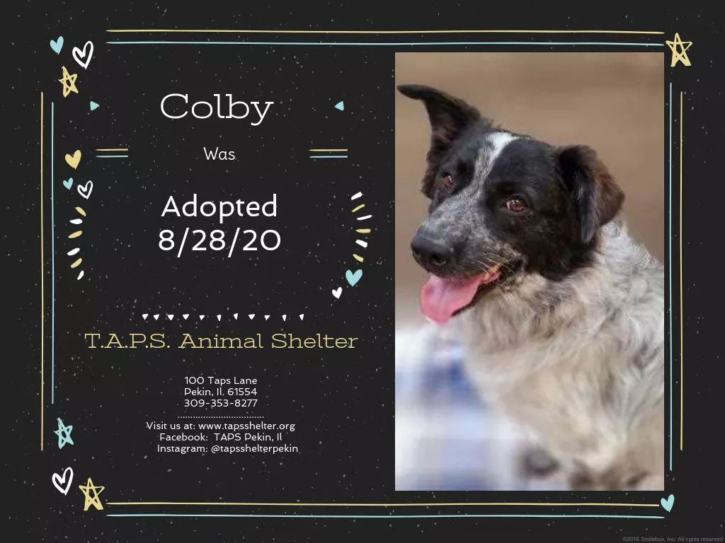 Adoptions for August 28, 2020 Posted bylindzamayAugust 29, 2020Posted inUncategorized Congratulations to Beans, Sweet Cheeks, Colby, Stella, Kovu and Tiana for finding their forever homes today! Share this:TweetLike Loading... Related