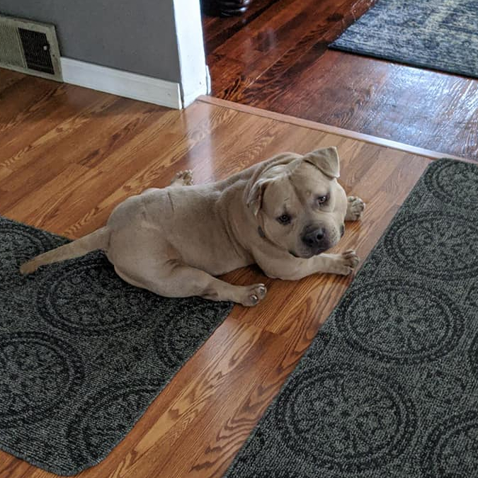 This stunning boy is all personality. He is already a staff and volunteer favorite. He a one and a half year old pit mix and is short and stout and weighs in at 50 pounds. He came to TAPS a couple months ago heartworm positive. Stallone has finished treatment and is now looking for a home that will love him forever. He is very unique in the way he looks and he’s absolutely adorable. However due to the way he’s built, Stallone struggles with simple every day things that normal dogs do. He would do best in a home without stairs and as the only pet in the home. In order to adopt Stallone you need to own your home, have owned a dog within the last 5 years, and are 21 or older. Click here to fill out an adoption form!