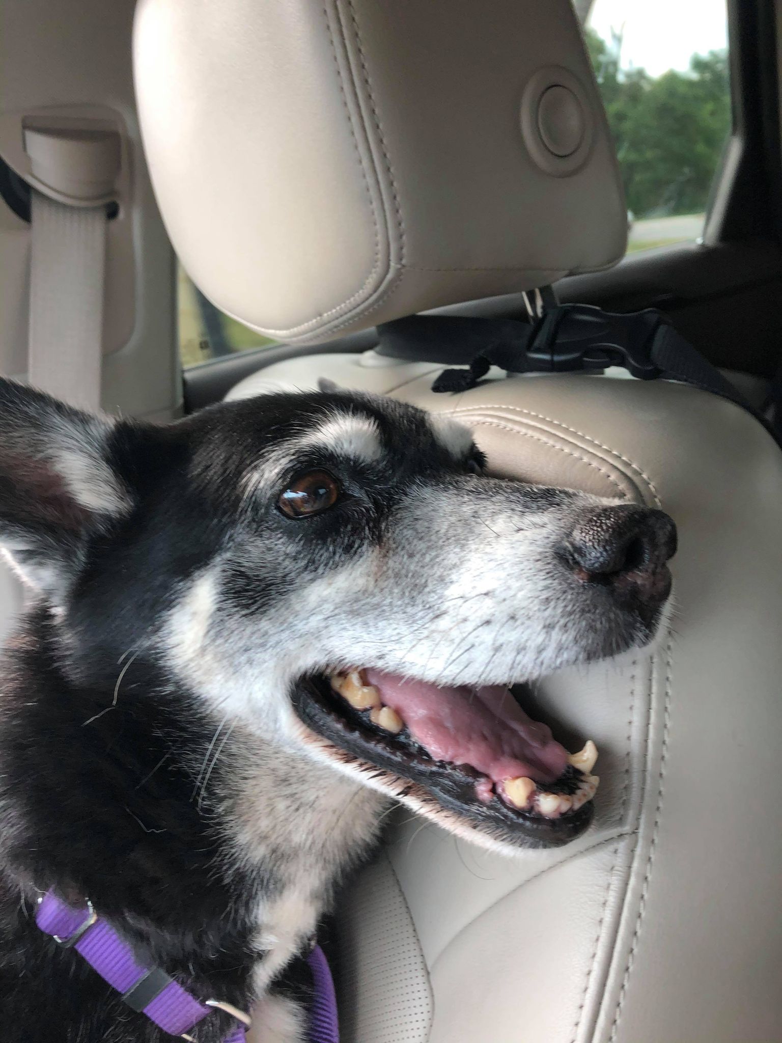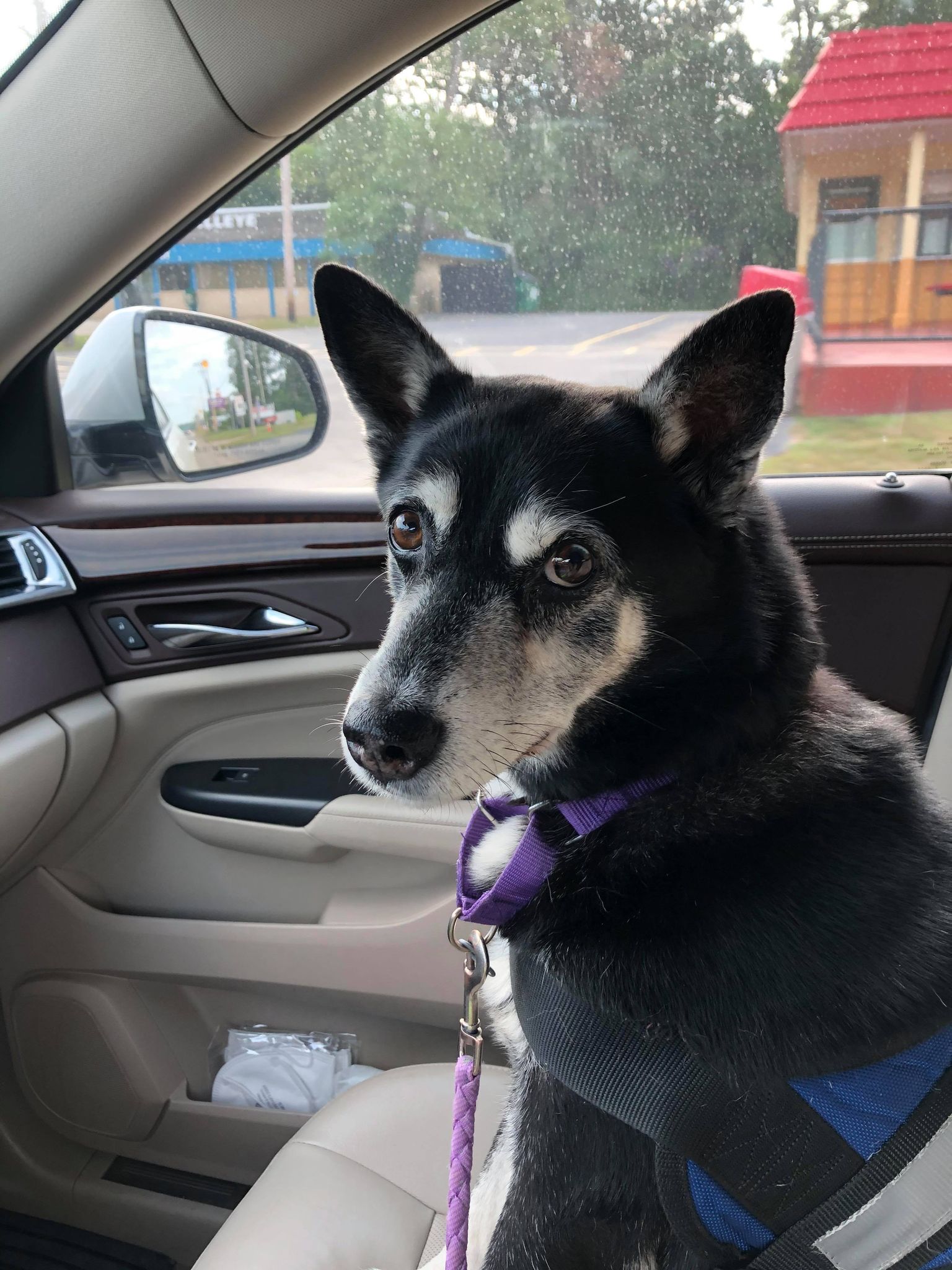 The second dog I brought home was Kelvin (an eight-year-old Siberian Husky mix) and although he hasn’t been at the shelter very long, he is older and it is evident that he has lived in a home before so being at the shelter causes him stress. As soon as he gets in the car, his nervousness is instantly shed and he becomes a happy, lively wonder dog! In fact, this little guy LOVES car rides and may be a good companion for over-the-road truck drivers who are looking for a furry passenger. Kelvin prefers to be in my house, rather than outside – but seems to get the greatest contentment during a car ride. Although I did not do a meet-and-greet with my dogs, he could hear my dogs in a different room of the house and was completely disinterested in them. These two dogs are a great example of dogs who will show you an entirely different personality in a home environment.