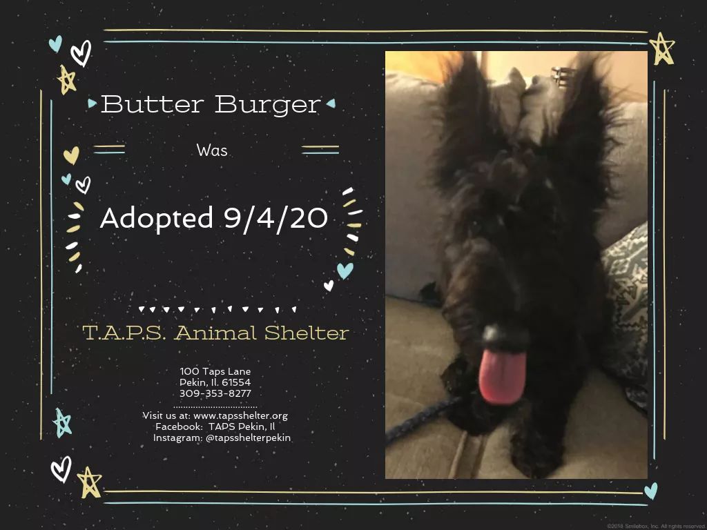 Congratulations to our Director, Holly, and her adoption of Butter Burger (now Shortie!) Fisher also found his forever home, and Lucy was adopted by the same family who adopted her sister Ethel yesterday. What a great day!
