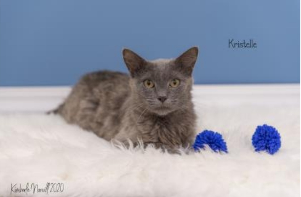 Hi there, I’m Kristelle and I am 3 1/2 years old. I am a beautiful, Russian Blue mix female. I was found being neglected, with kittens, and allowed to be surrendered to the shelter. I lived with a kind foster until myself and my babies were able to be adopted, which my babies have now all been, leaving me alone at the shelter. I am a soft, sweet, quiet, gentle, and loving girl. I have Cerebellar Hypoplasia, which is also called “wobbly kitten syndrome”. It just means that I have an unsteady gait..making me all the more adorable. I do not require any medicine and it does not affect my quality of life. I love to be petted talked to, and am very attentive and enjoy being with my human friends. I am a darling young lady. If you think that I could be the perfect fit for your forever family, please fill out an application and come to the shelter so we can get to know each other. You will likely not be able to resist my charm and fall in love!!