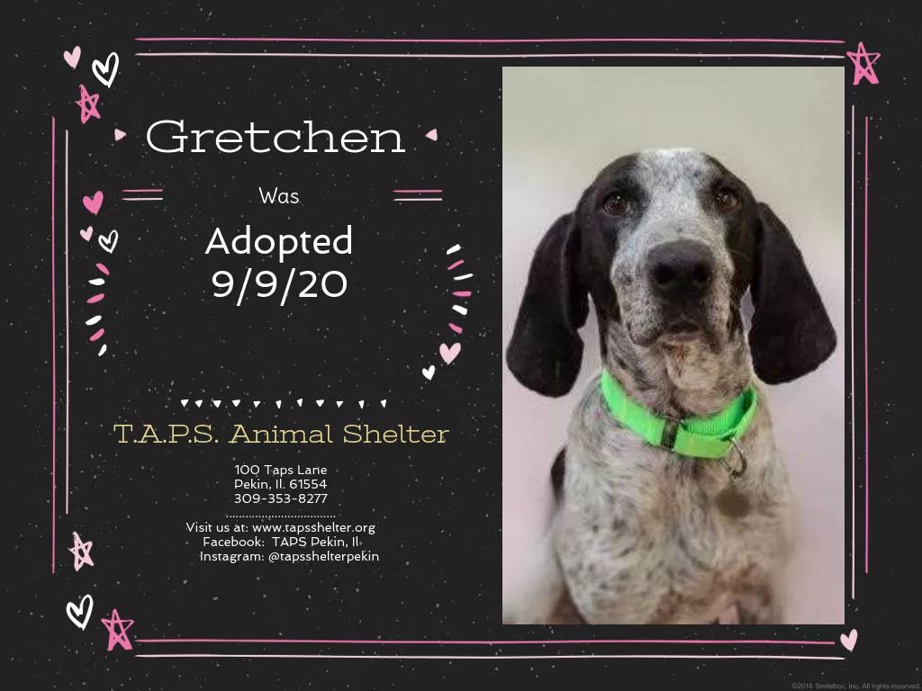 Adoptions for September 9, 2020 Posted bylindzamaySeptember 10, 2020Posted inUncategorized Congratulations to Finley & Gretchen for finding their forever homes today! Share this:TweetLike Loading... Related