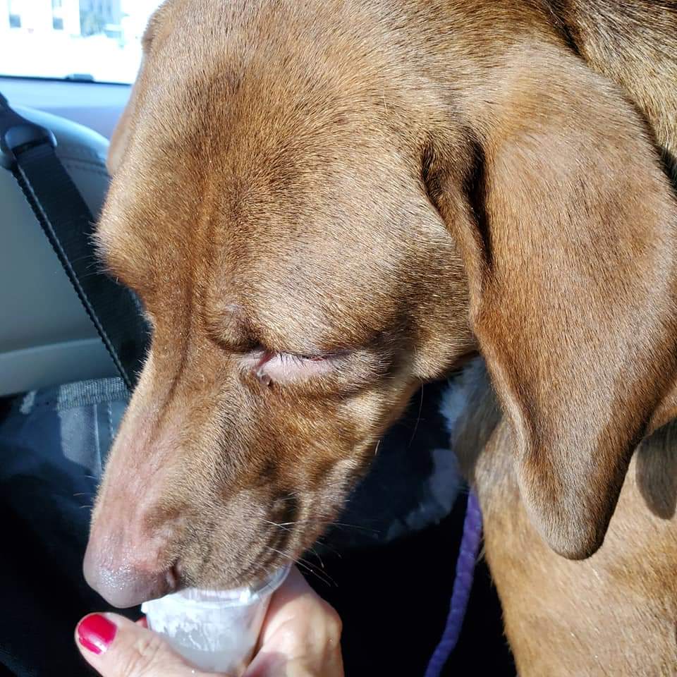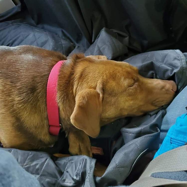 In his kennel he exhibits pure happiness and is a bit on the quiet side. But once you enter his kennel, he becomes more excited because you chose him over all the other dogs at the shelter. Given that he came from a multi-pet home, it is presumed he is pet friendly, and he also keeps a clean kennel and is well-socialized with humans. With his history, it was not surprising to see that he rode well in the car and took a nap.