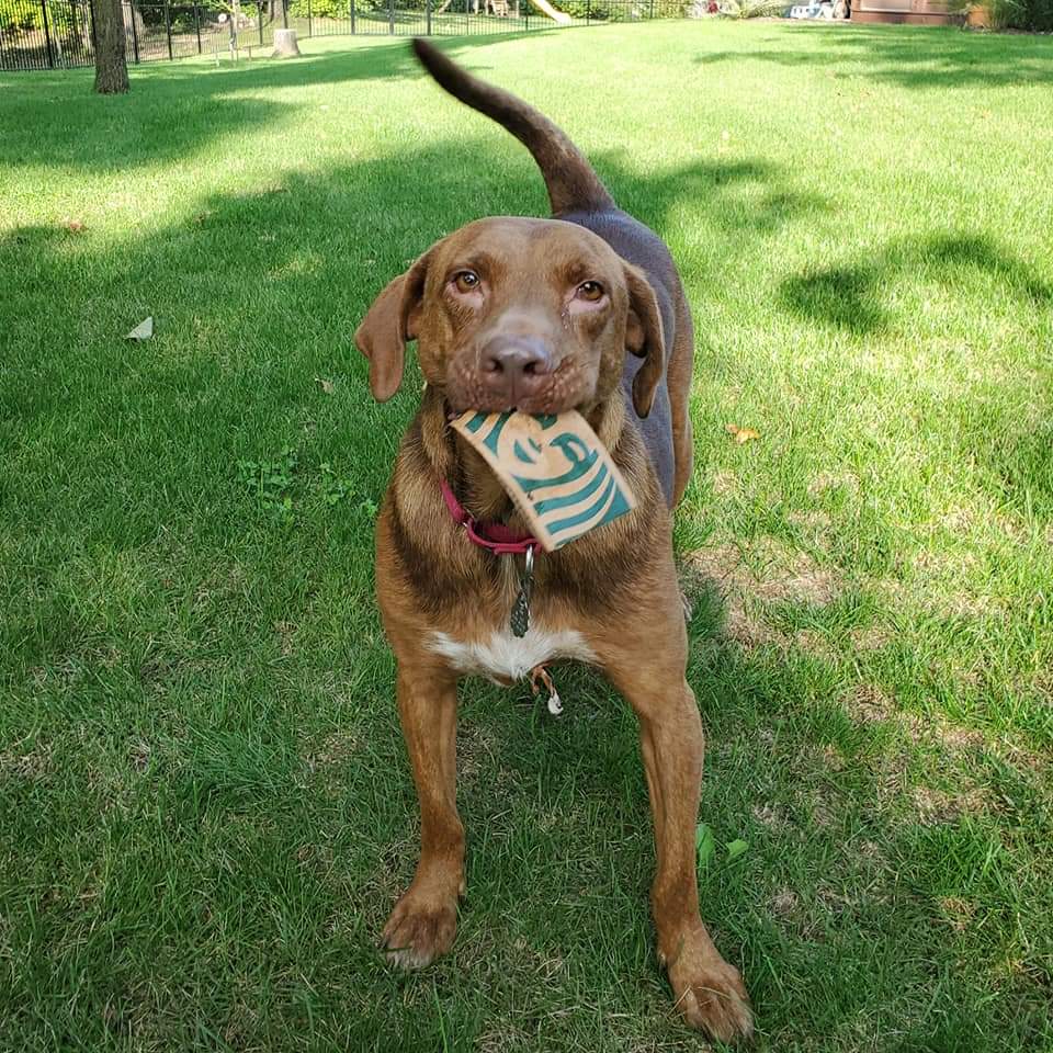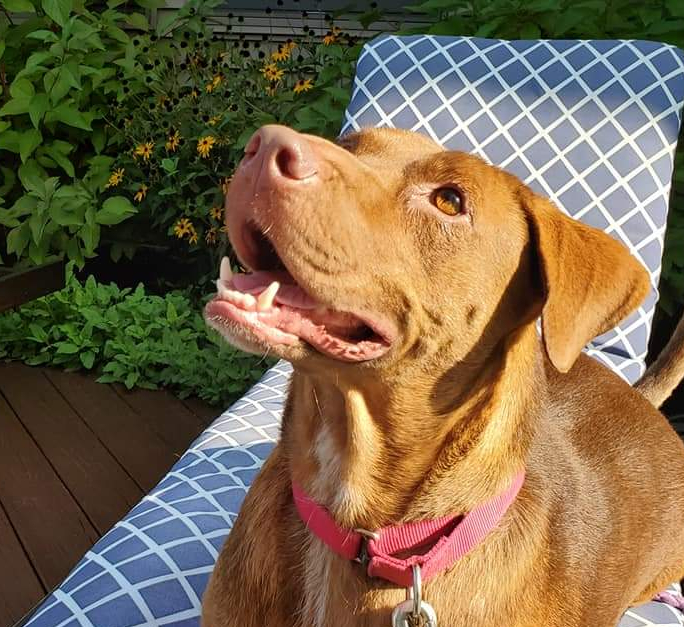 Tootsie Roll is a 2-½ year old, male, chocolate Labrador/Retriever mix who at first blush appears to be a little overweight; but upon second glance I believe he simply has a small head for his body. Tootsie Roll came from a home with multi-pets so being at the shelter does not seem to stress him out as much as other dogs.