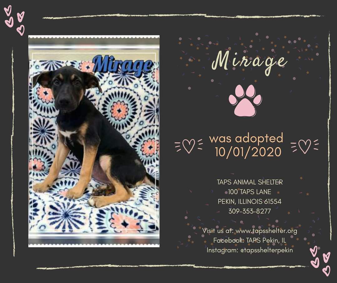 Adoptions for October 1, 2020 Posted bylindzamayOctober 2, 2020Posted inUncategorized Congratulations to Ace, Pistachio, Mirage – and Eklund & Flagg who were adopted together! Share this:TweetLike Loading... Related