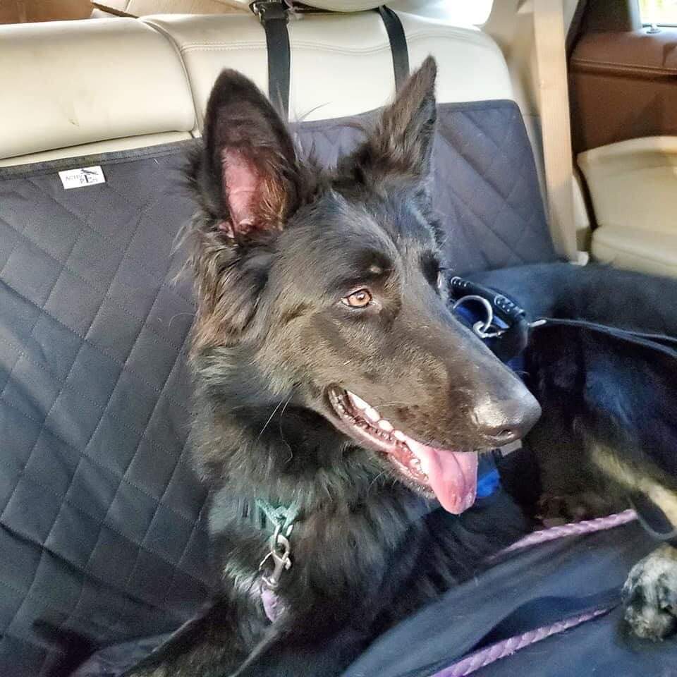 Landry rides well in a car and is very calm – until you get to a drive-thru! Landry has obviously been to a drive-thru in the past and burst with excitement because knows that a drive-thru means a treat of some sort for him. In my home, Landry enjoyed investigating all of the nooks and crannies and seemed very happy exploring and playing, but Landry is a puppy in a large dog body so he will need proper toys and guidance so he does not become destructive. Although Landry loves to play, he can be “mouthy” so no small children for this playful large boy! Landry is also extremely inquisitive of new things and quickly eyed up my baby gates (that are not secured) and began poking at them in an attempt to figure out how to get around them. I believe Landry to be a very intelligent dog who will problem-solve and I also witnessed how he loves to please people as he listened well to my correction when he tried to counter surf.