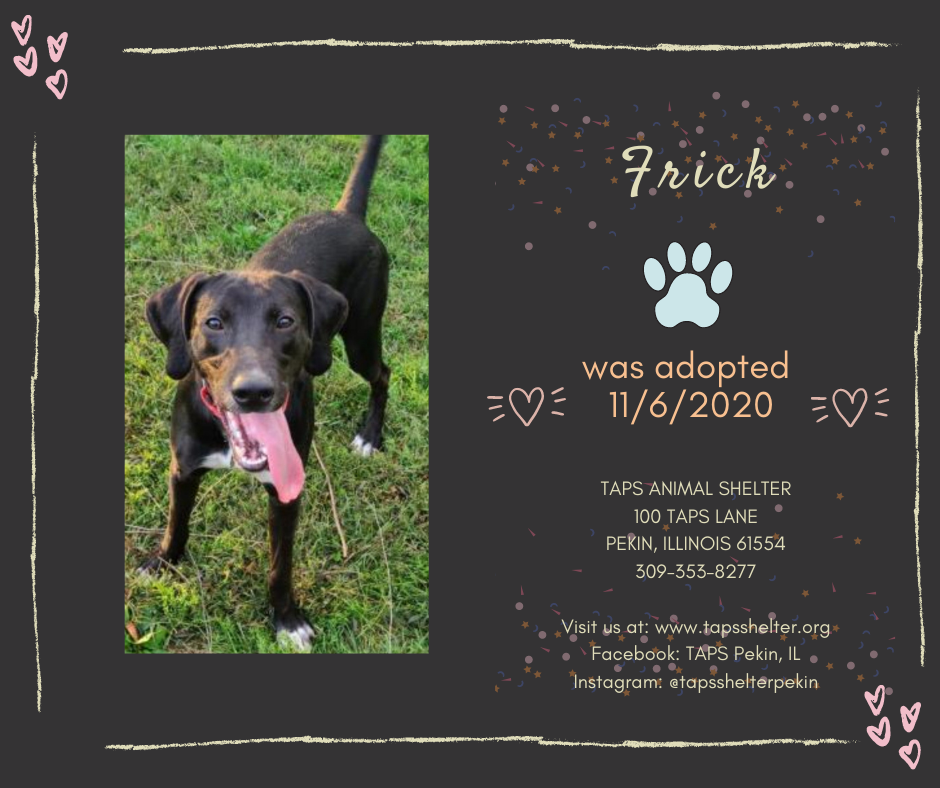 Congratulations to Rick Springfield, Maddie, Booth & Josephine (who were adopted together!) – Slinky, Frick, and Elena who all found their forever homes today!