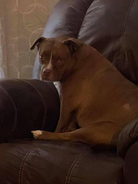 Brindle Marley was adopted fairly soon after intake but it was only a short adoption. Her adopters were moving and had to return her. She was still young and beautiful and full of life, but she came back with a few undesirable behaviors. Her adopters showed us how they could hold a toy over their head and she would jump to grab it…unfortunately jumping above your head and grabbing things out of your hands is not a desirable trait in a young and powerful dog. It was after this brief adoption that brindle Marley was with TAPS for over a year. After seeing this same scenario time and again in many of our pitbulls (puppies going home and being returned as young adults with no training…basically puppy mentality in adult bodies) we changed our bully breed adoption requirements. Since changing our bully breed adoption guidelines, we have reduced bully breed returns from an over 75% return rate to a return rate of less than 5%.