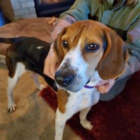 Daisy Mae is a 4-year-old, girl, hound weighing in at 33 pounds, but is grossly underweight. Daisy came to TAPS in early October from Kentucky and, like so many dogs, came with a blank slate of information which made it fun to take her out of the shelter to learn more about her. Also, when she arrived at TAPS, she was heartworm positive and was unable to participate in any activities until recently as she just finished her heartworm treatment.