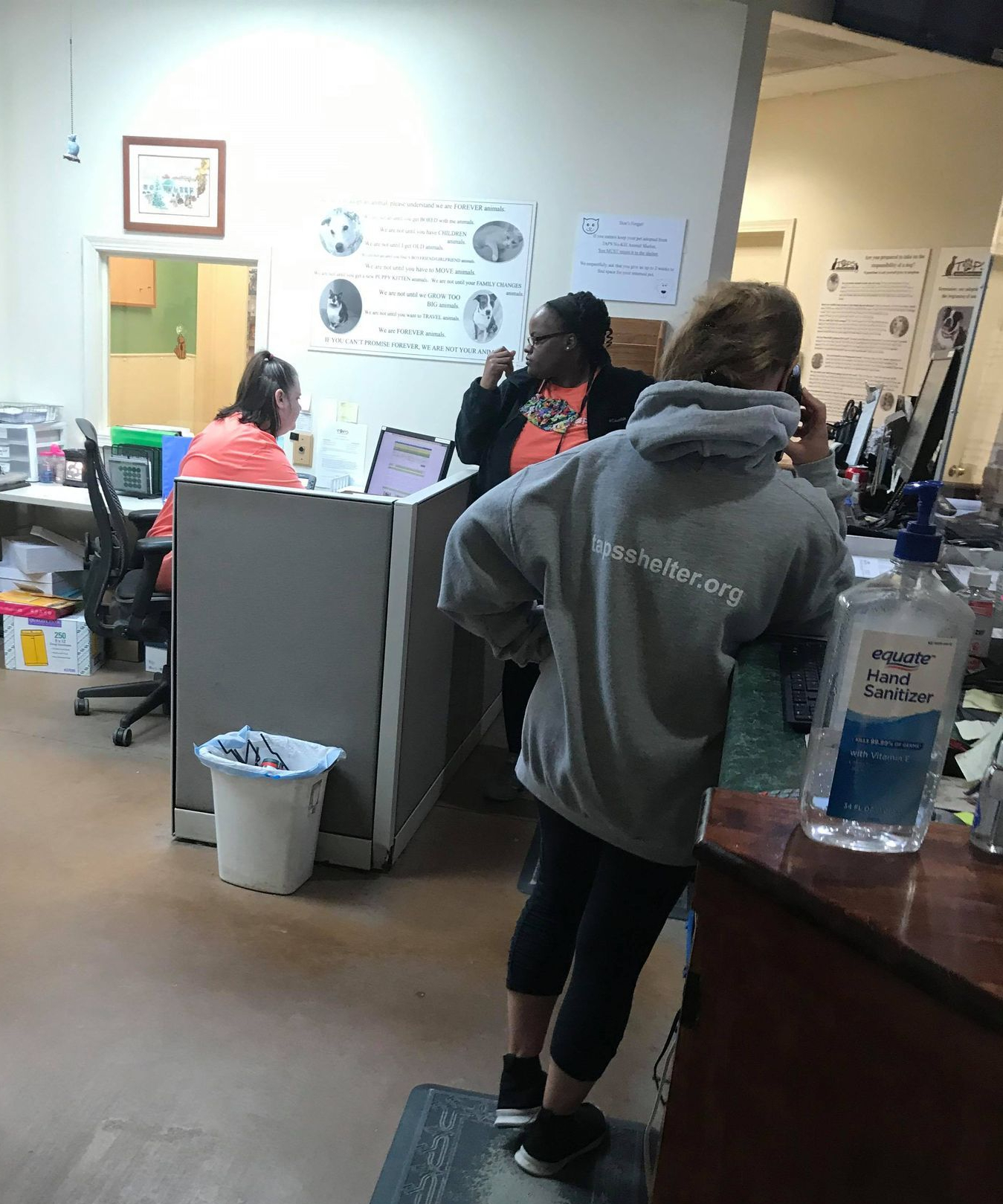 Their biggest task, by far, is tackling the incoming applications that they receive each day to process. For every adoption the public sees, there are a handful of applications that aren’t approved. Some don’t meet our minimum criteria for adoption. Some, they simply can’t finish processing due to insufficient information. The staff spend their days calling references, landlords, vets offices, checking home ownership, and fielding the return calls, all in an effort to move our animals into adoptive homes. The front desk works long-hours, well beyond their 40 hours a week, all in the name of adoptions. If you’ve adopted a shelter animal from TAPS, you know how they put their heart into the task at hand of finding the best fit for our dogs and cats. Behind every daily adoption you see posted on our Facebook page, the front desk have put in hours of work…and for that, I give thanks.