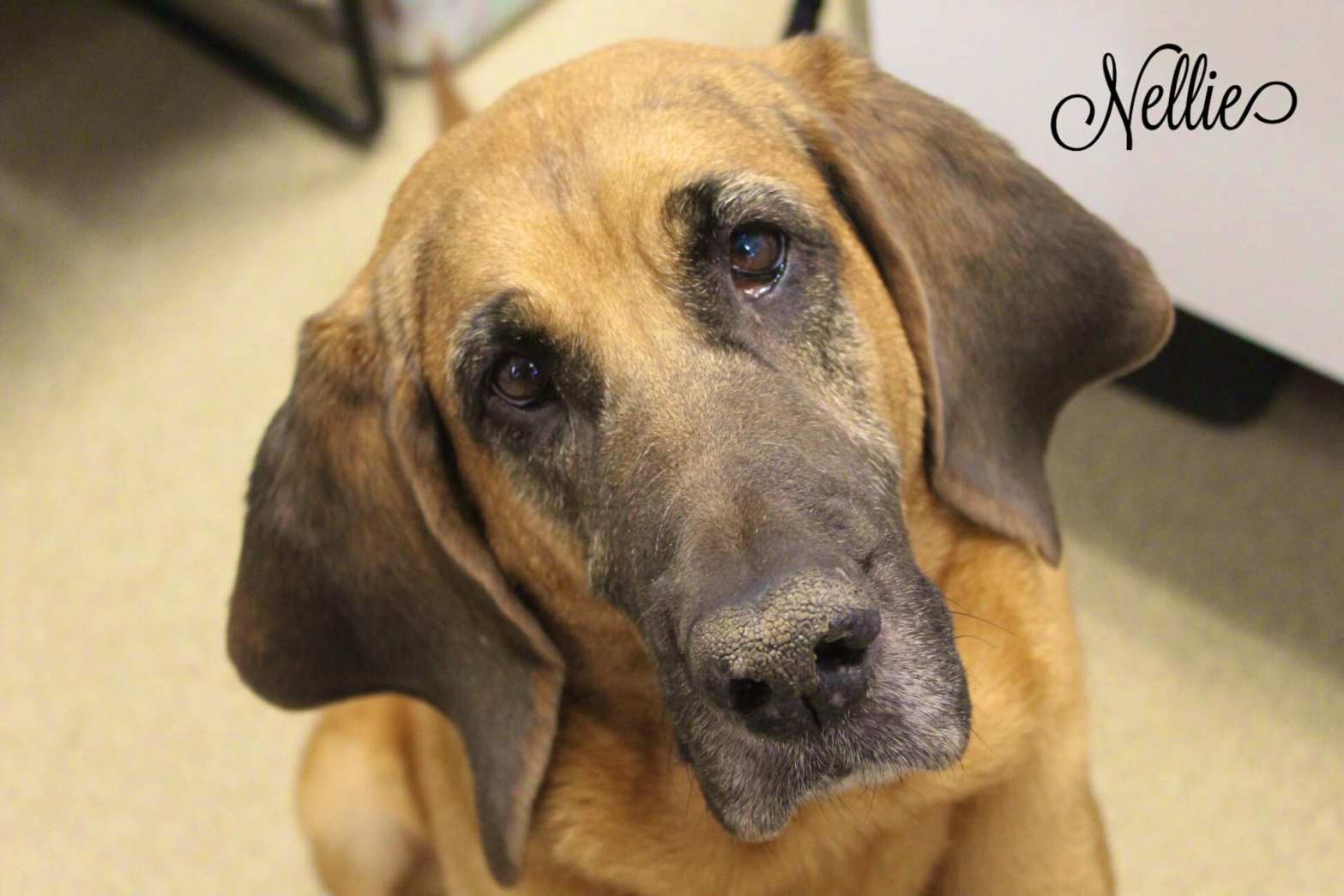 Nellie, affectionately referred to at the shelter as Nellie-Belle, is a 7.5 year old hound mix and is the matriarch of the shelter. Nellie once lived in a loving home and had a family, but tragically, they experienced a devastating house fire and were forced to move and couldn’t take her with them. She originally came to TAPS in 2015 when she was just three years old and has been adopted and returned to the shelter because her quirks were not well understood. She has now been with TAPS for roughly two full years. To say she is a staff and volunteer favorite is an understatement. She is a joy on a leash even at 80 pounds and loves to go on long walks. Nellie loves to sniff and her nose is her guide, but she easily redirects with a gentle nudge. Nellie especially loves her special grain-free bones and will sit, shake, and lay down like a complete angel on command for a treat. Her favorite snack is a plain hamburger (no bun, no extras) from McDonald’s.