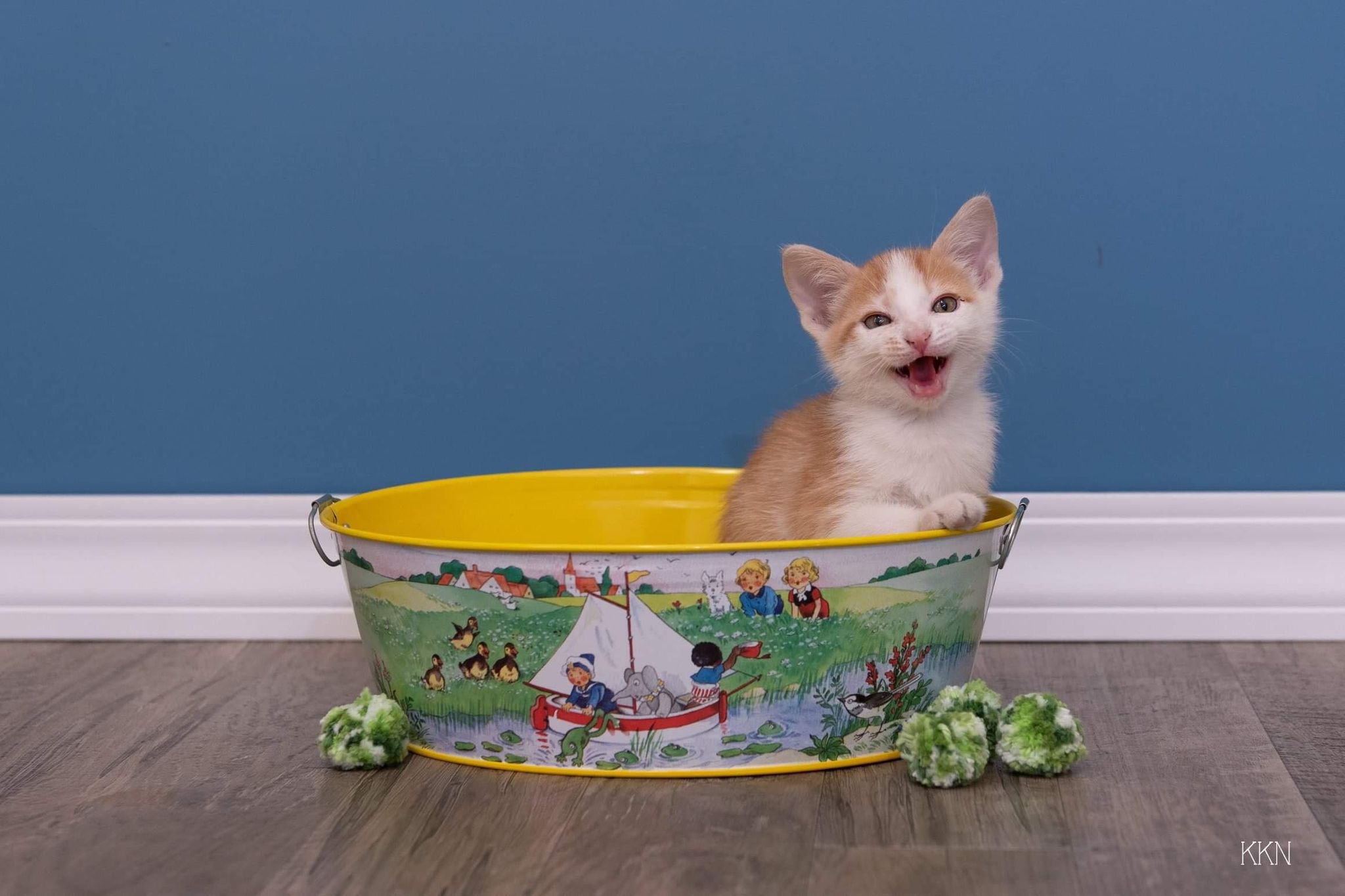 Approximately 6 years ago, Sheri recruited the other half of the dynamic duo, her cousin, Kim. Kim is a whiz behind the camera lens and captures some priceless photographs of our shelter kittens and cats. Kim is always on the look out for props, and edits the photos of almost every cat and kitten that walks through our shelter doors and foster homes too.
