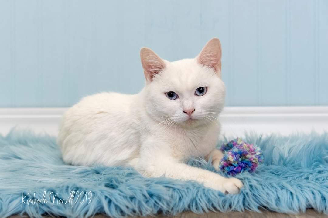 Cloud was lucky to land into one of our foster homes very early on and has been able to heal comfortably. “CiCi”, as called by her foster mom is 2 years old with velvety soft fur and beautiful blue yes. She has wound up a little limited, and does walk with a limp, but Cloud enjoys running around the house and climbing and lounging like kitties do. She loves her scratchy cat tree and string toys, and to chase sparkly balls and toy mice. After almost a year on a road of recovery, Cloud is finally ready for her forever home. Keeping her on a good diet is really, really important because if she does not maintain a good weight it will be bad for her hip and back. Cloud enjoys hanging with her people and will sometimes lay in a lap or sleep with you, but she would prefer to not be held and carried around. Cloud will be seeking a home without young children, as this will be safest for her more fragile condition.