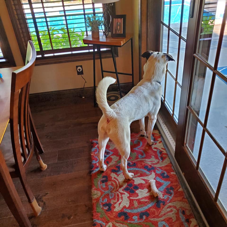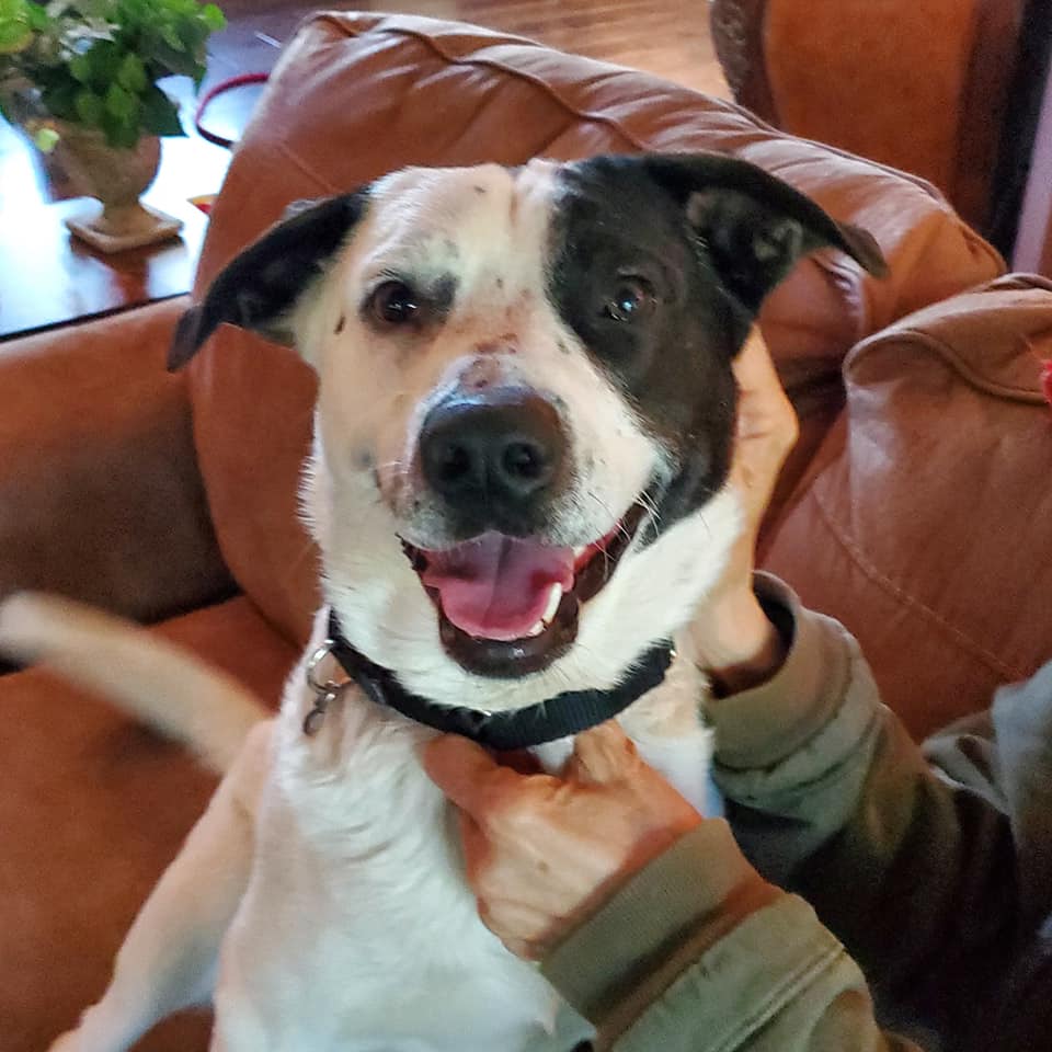 Once at Linda’s, he was very happy exploring his new surroundings…his tail never stopped wagging! He does counter surf and will need help with potty training. He listens well, though, and aims to please! We found out Colby is a HUGE lovebug. He wants to be close to his humans and loves to snuggle on the couch.