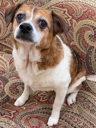 Fannie: Can her smile get any bigger? Fannie is 12 years old and weighs in at 25 pounds. She was from a hoarding situation so is looking forward to a life as a well-loved house dog after her heartworm treatment.