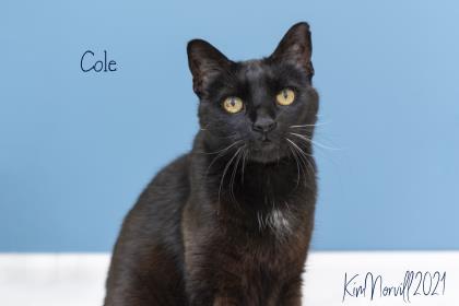 Hi, my name is Cole and I’m a spunky 12-year-old kitty … I bet looking at my picture, you can guess how I got my name! When I’m lying in the sun (one of my favorite pastimes), my fur is a beautiful mix of black and auburn colors.